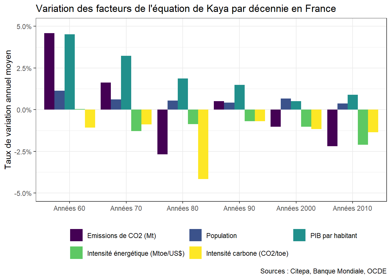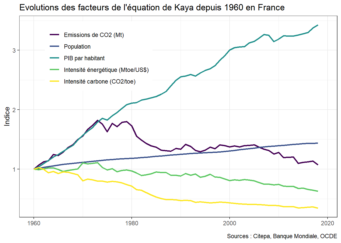 L'équation de Kaya (1/2) : comprendre l'évolution des émissions de CO2 en France